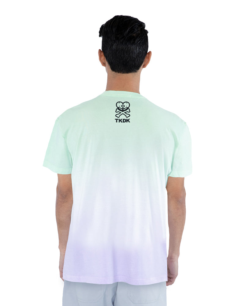 – Men’s screen print tee in ombre tie-dye